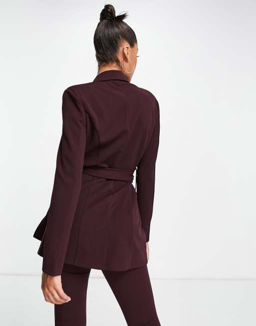 Americana de traje color vino con cintur n obi de punto de ASOS