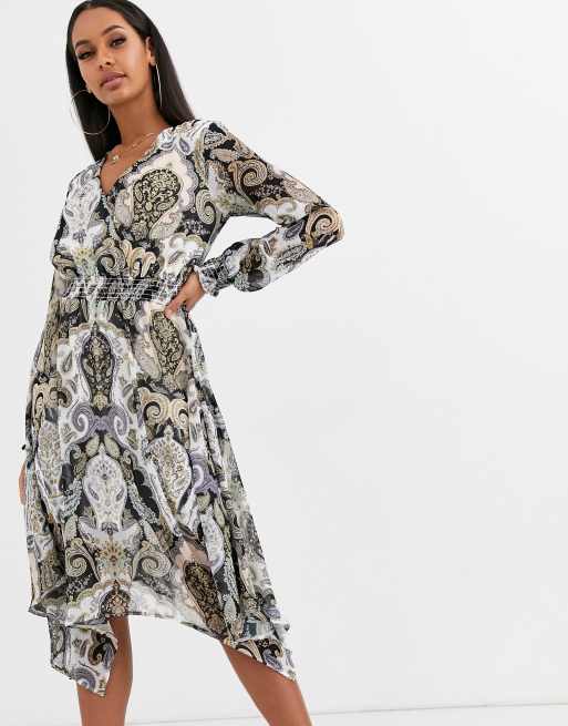 Vestido con bajo tipo pa uelo y estampado Paisley de Lipsy