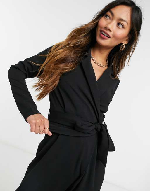 Mono largo negro estilo esmoquin de manga larga de crep de ASOS DESIGN
