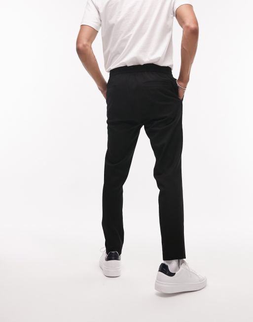 Pantalones de vestir negros de corte pitillo con cintura el stica