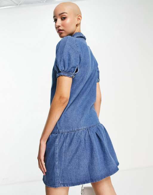 Vestido vaquero azul con cuello de volantes de Miss Selfridge ASOS