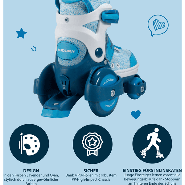 Patin a roulette outlet taille 26, HUDORA Patins roulettes enfant My First Quad cyan taille 26 outlet