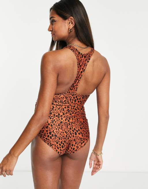 Ba ador marr n de lactancia con estampado animal y cremallera en