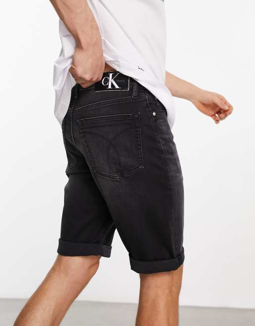 Calvin Klein Jeans cc slim denim shorts in mid wash black ASOS
