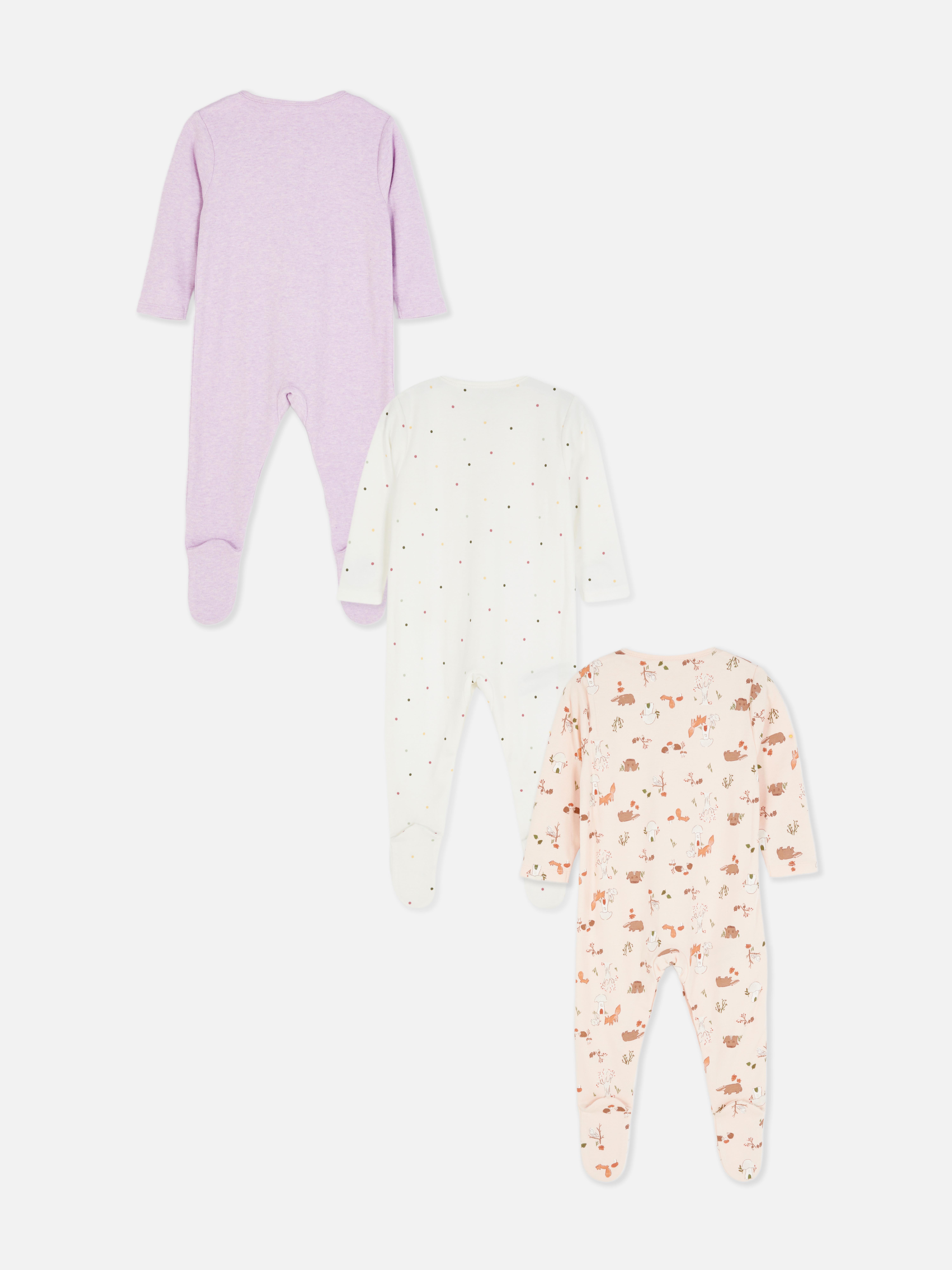 3pk Mixed Print Sleepsuits Primark