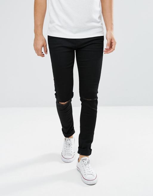 Vaqueros ajustados con roto en la rodilla en negro Form de Weekday