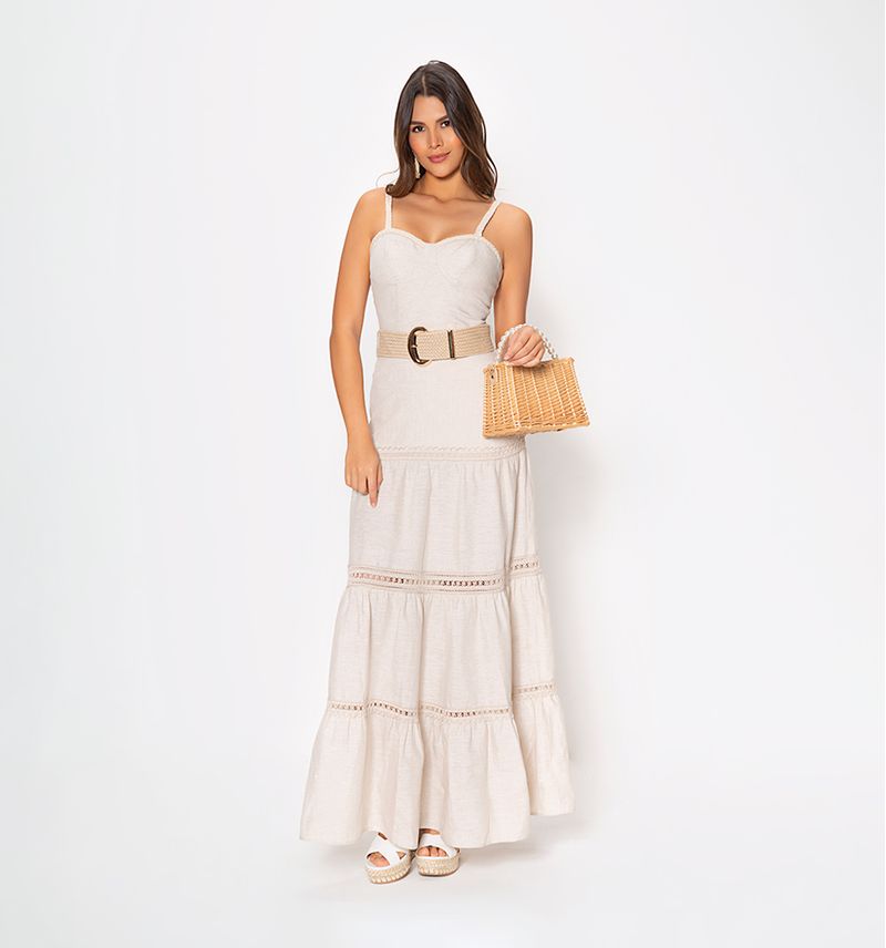 Vestido Largo De Tiras Con Insumo Y Fald Studio F M xico