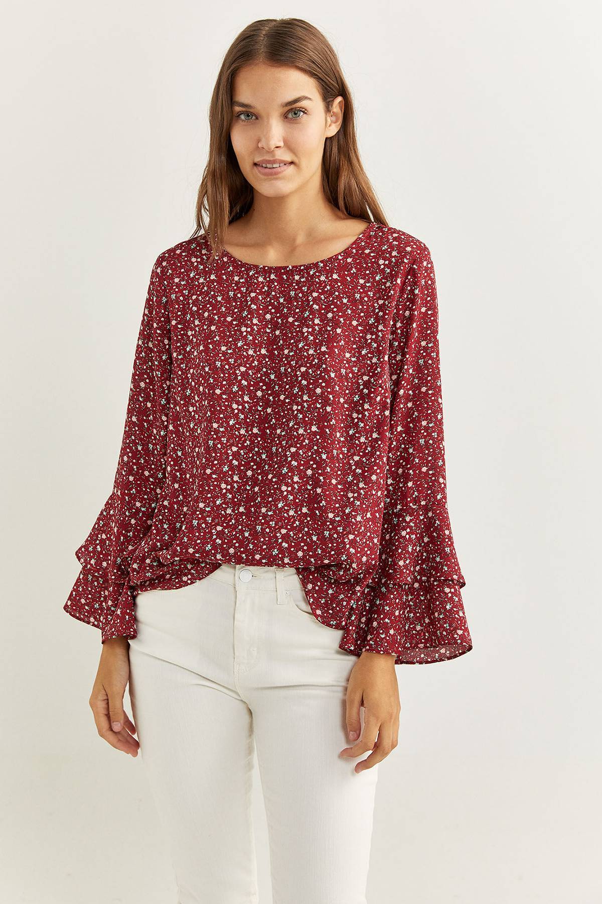 Blusas manga larga outlet con vuelos, Blusa estampada con mangas largas y vuelos Springfield outlet