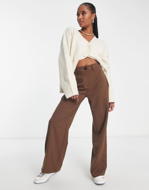 Pantalones outlet palazzo bershka, Bershka Petite wide leg slouchy dad tailored pants in brown outlet