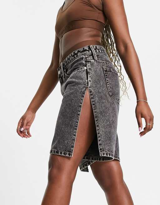 Pantalones cortos vaqueros gris lavado largos hasta la rodilla con laterales abiertos de Signature 8