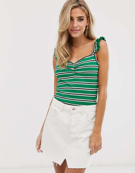 Pimkie jerseys outlet, Pimkie jersey cami with frill detail in green stripe ASOS outlet