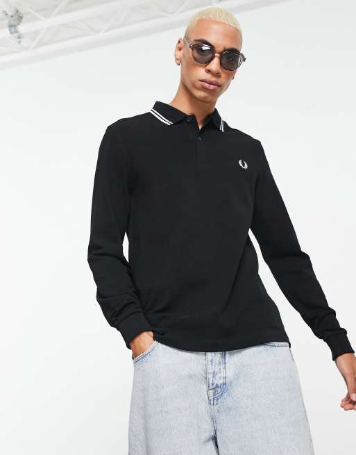 Polo negro de manga larga con ribetes dobles de Fred Perry ASOS