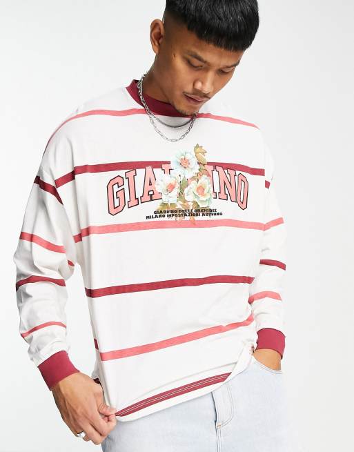 Camiseta extragrande a rayas rojas y blancas de manga larga con