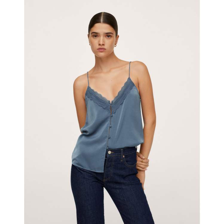 Top lencero azul abotonado en la parte delantera de sat n de Mango