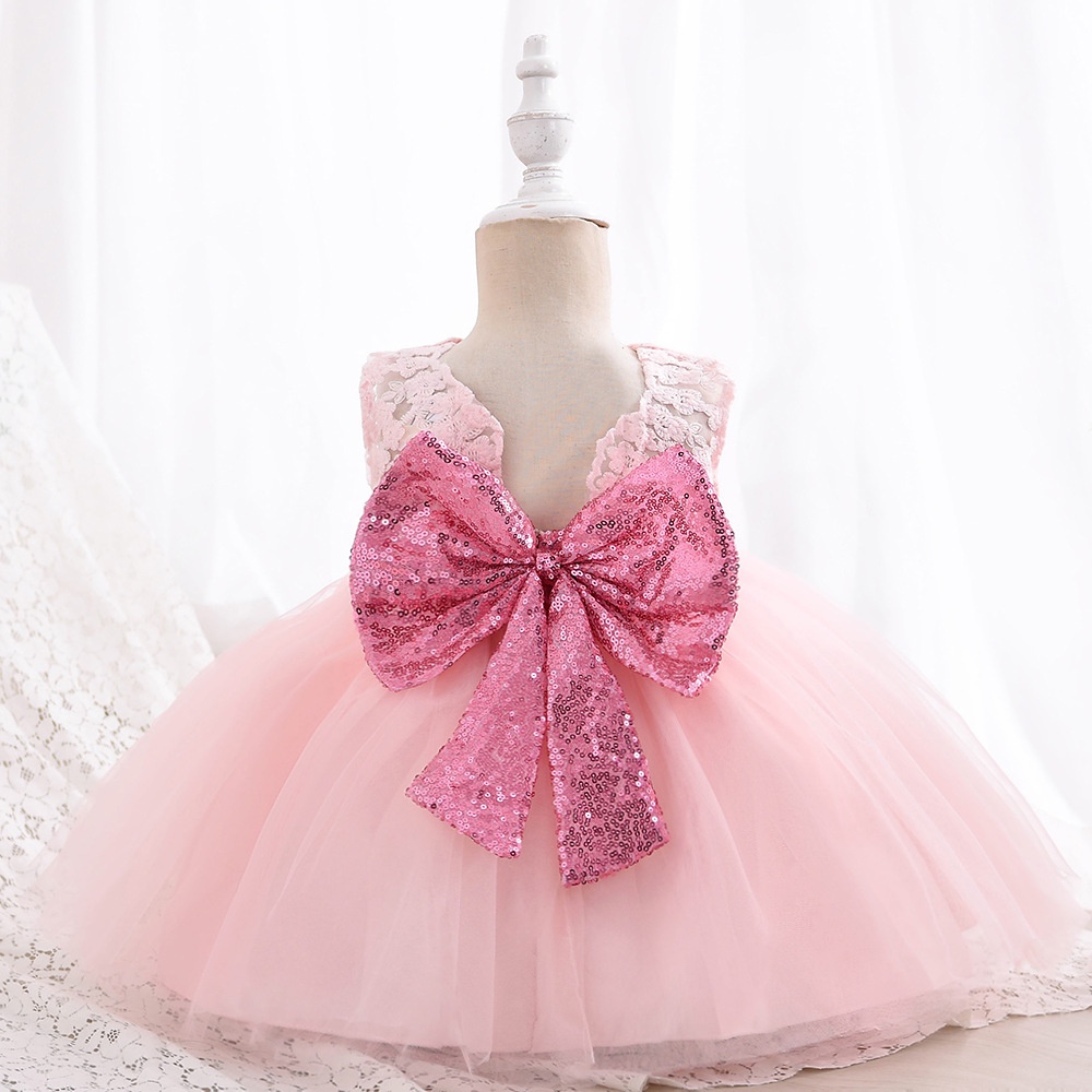Vestido ni a ceremonia con mangas rosa con tul Aiana Larocca
