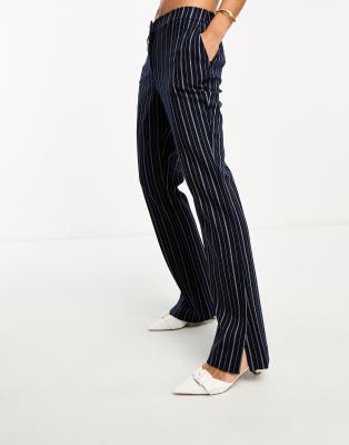 Pantalon azul con outlet rayas blancas, Pantalones azul marino a rayas blancas de NA KD x Chloe Schuterman parte de un conjunto outlet
