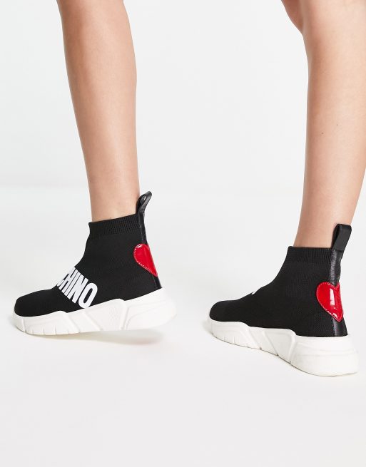 Baskets montantes Lovely Love cuir femme noir Love Moschino un
