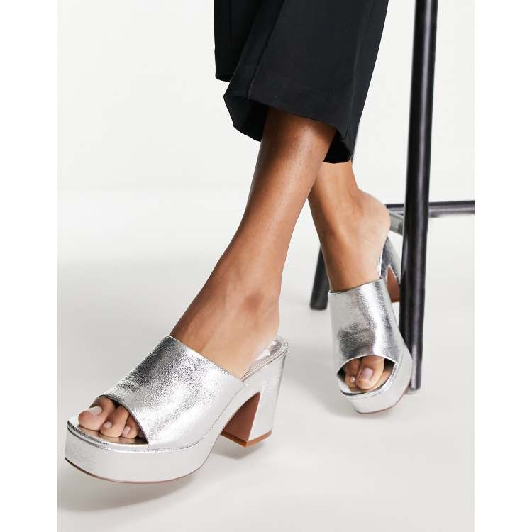 ASOS DESIGN Harmony mid heel platform mules in silver
