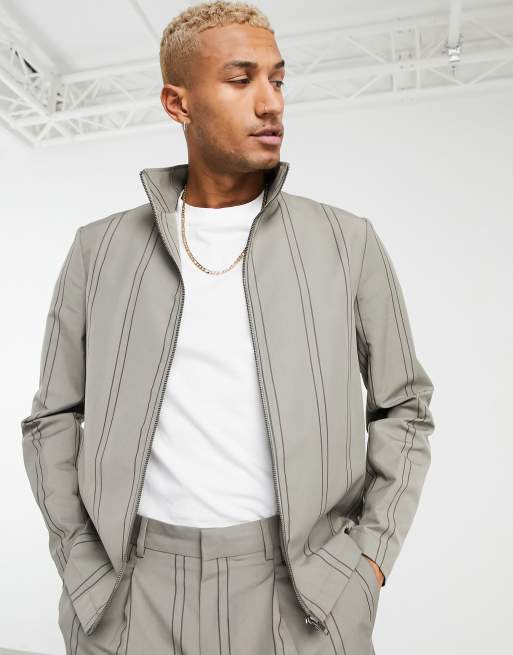 Chaqueta de ch ndal elegante a rayas grises de ASOS DESIGN parte de un conjunto