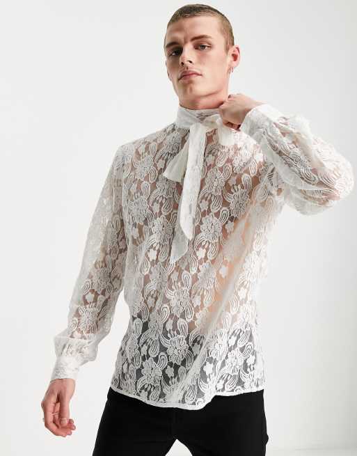 Camisa de corte est ndar blanca de encaje con lazo en el cuello de ASOS DESIGN