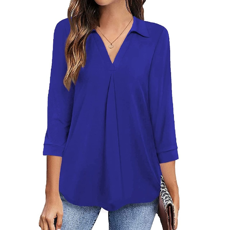 Blusas outlet jersey mujer, Mujeres Verano Oto o Se oras Jersey Cuello En V Tops Color S lido outlet
