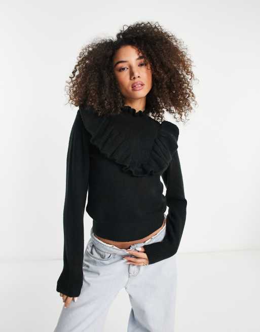 Jersey negro con cuello alto y volante de French Connection ASOS