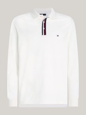 Global Stripe Placket Regular Fit Long Sleeve Polo White Tommy