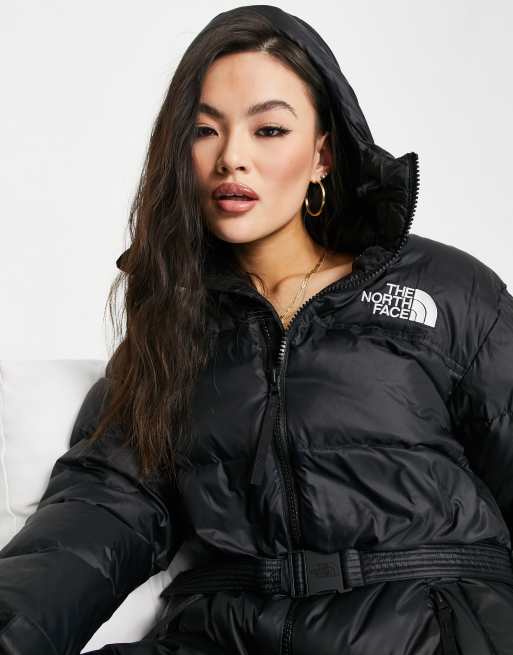 Parka de plum n larga negra con cintur n Nuptse de The North Face