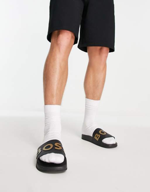 Claquette doré outlet, Claquette lani res d tail dore en simili noir outlet