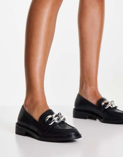 Stradivarius loafer flat shoe with chunky chain in black ASOS