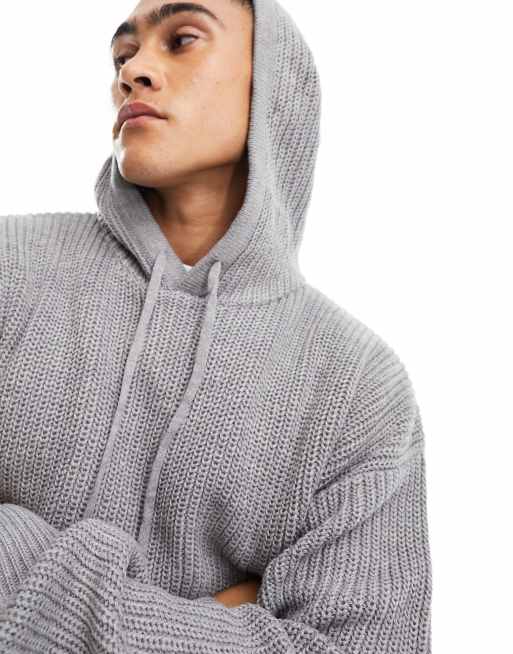 Sudadera gris claro holgada con capucha de punto ingl s de New