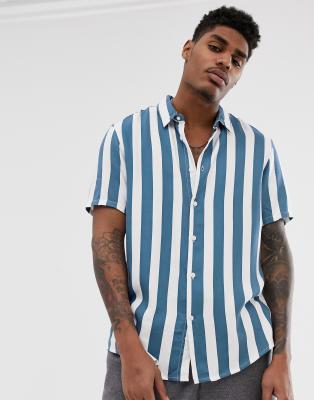 Camisas blusas Hombre Camisa Manga Corta Raya Vertical Mostaza