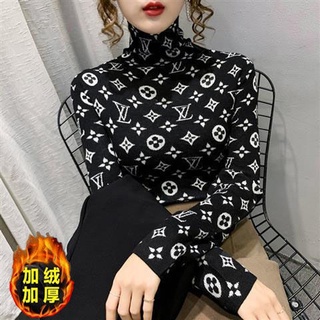 En stock Blusas De Malla Inferior De Cuello Alto Para Mujer Lv Slim Manga Larga Tops