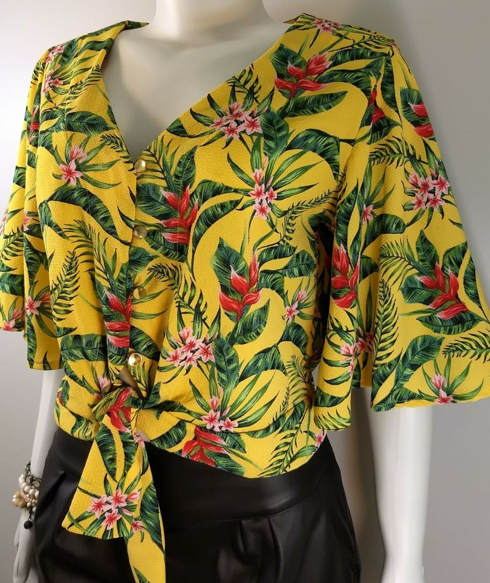 Blusa Viscose Mullet Amarrar na frente manga Flare COD184 Loja