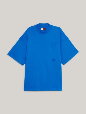 Camiseta con cuello perkins y escudo Azul Tommy Hilfiger