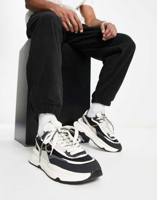 Bershka Baskets de course chunky Noir et blanc