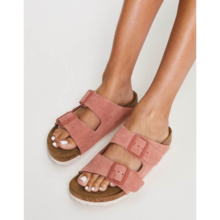 Birkenstock Arizona Sandales plates en daim Rouge terre