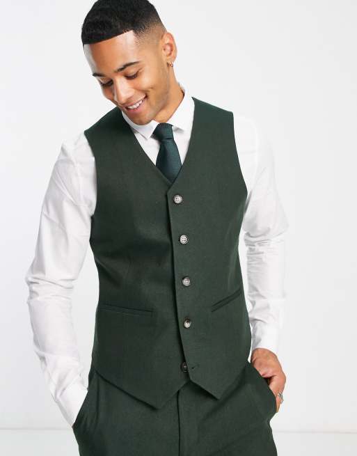 ASOS DESIGN wedding skinny wool mix suit in dark green basket