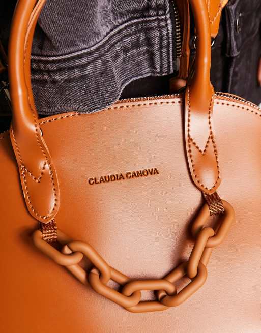 Bolso de mano grande color tostado con dise o curvado y detalle