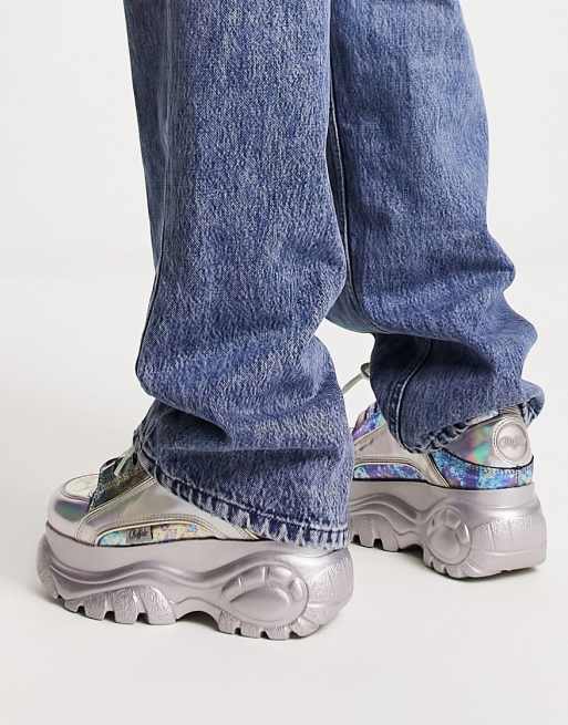 Chaussure buffalo année outlet 90 prix, Buffalo Baskets semelle plateforme surdimensionn e Argent holographique outlet