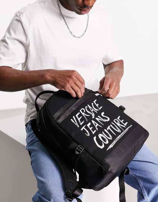 Mochila negra con estampado de texto de Versace Jeans Couture ASOS