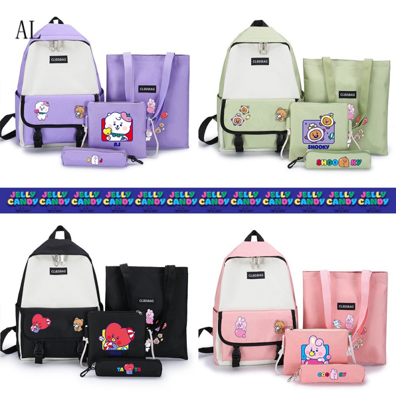BTS BT21 Mochila De Dibujos Animados Conjunto De 4 Piezas De Lona