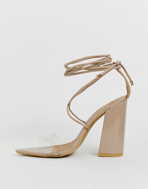 PrettyLittleThing Sandales lac es talon carr et bout pointu avec bride transparente Nude