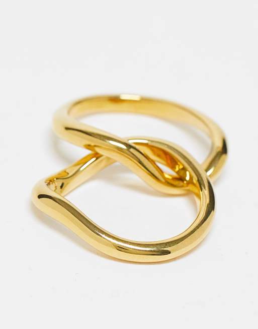Anillos entrelazados ondulados chapados en oro de 18 quilates de