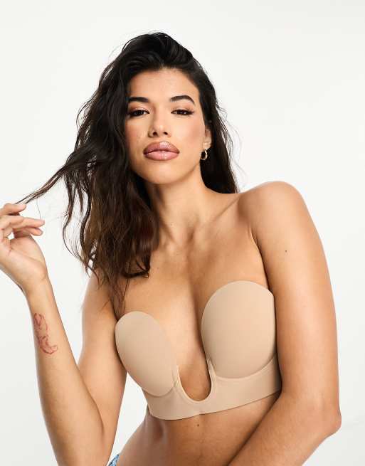 Sujetador beis adhesivo sin tirantes ni espalda con escote en U de