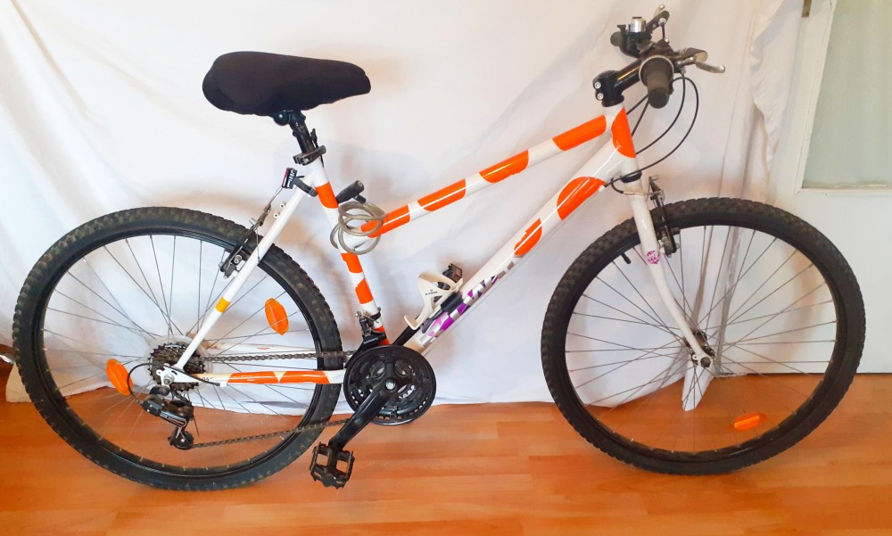 Bicicleta MTB Dama BTWIN alba Oxylane 19 26 inch Shimano Alhonga