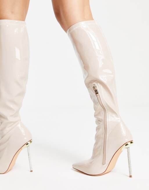 Simmi London Pointure large Demi Bottes talon aiguille orn de strass Beige verni