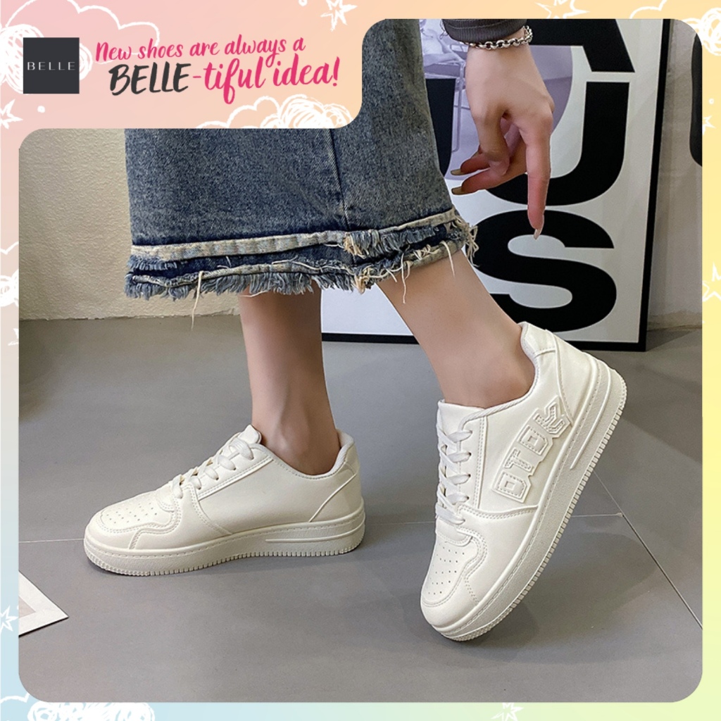 BELLE Low Top Beige Plain Sneakers made with leather Casual