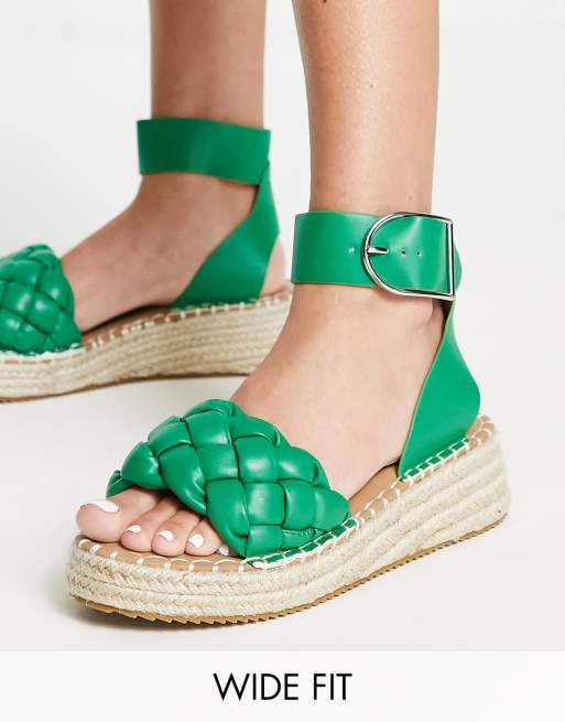 Glamorous Wide Fit Sandales tress es style espadrilles semelle plateforme Vert