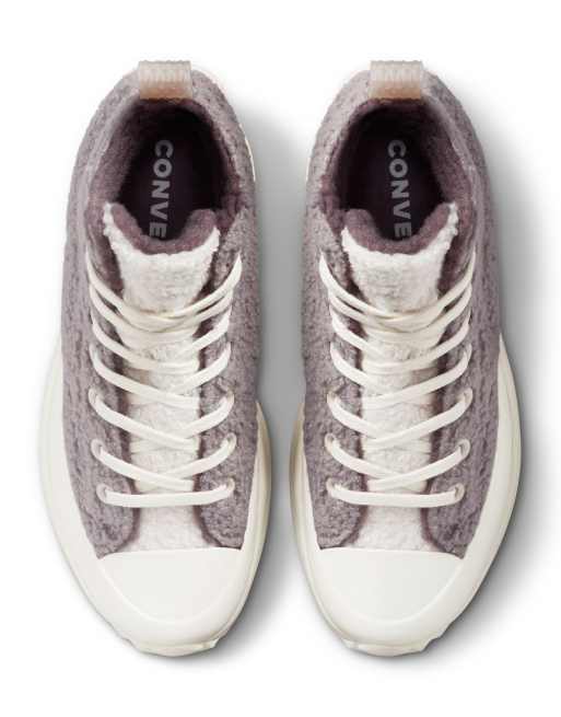 Converse outlet mauve plateforme, Converse Run Star Hike Hi Baskets montantes en imitation peau de mouton semelle plateforme Vapor Mauve outlet